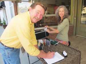 Bob Carrison, a candidate for the SC Senate District 17, purchases a CD from singer Susan Taylor and signs up for her email list.