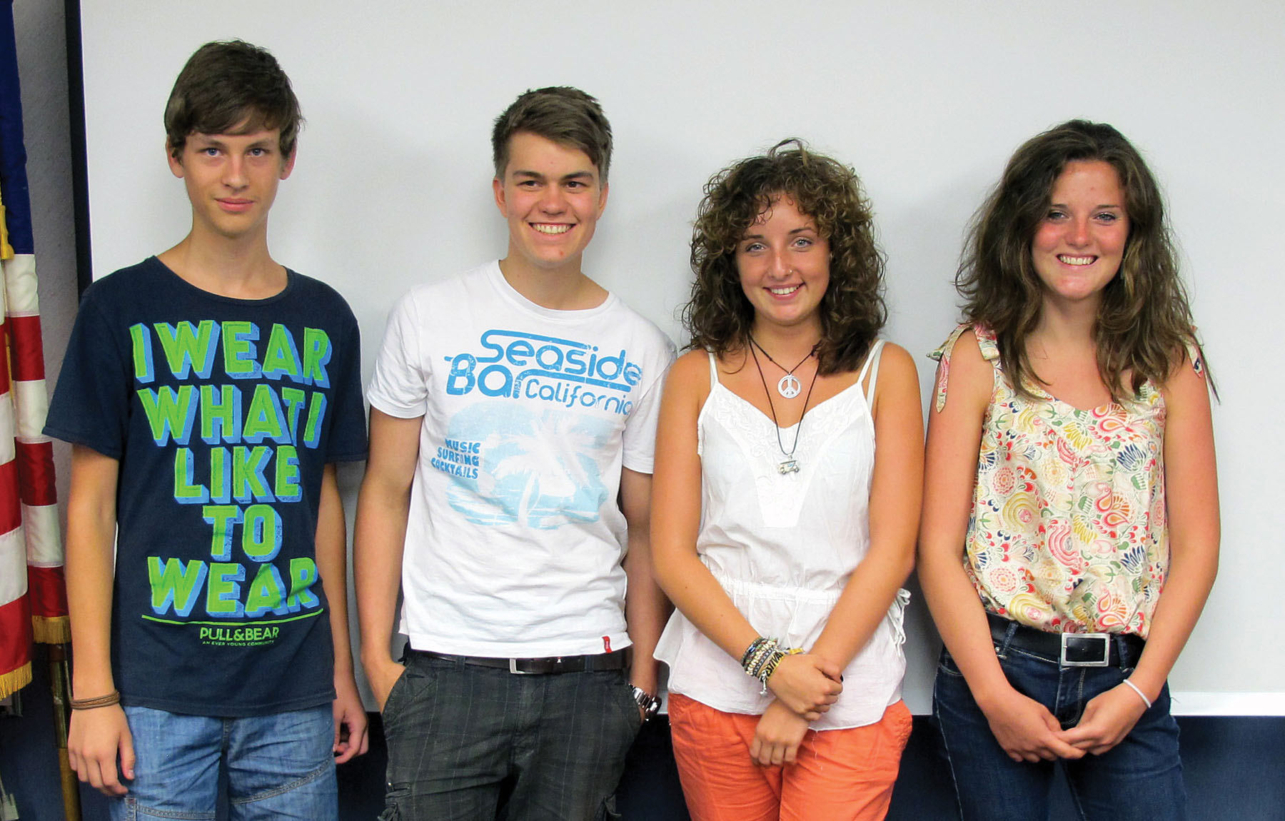 Four Lions Club International Exchange Students visited the Winnsboro Lions Club in Winnsboro, July 17. They were (from left) Flo Cioban from Romania, Paul Girlich from Germany, Noe Jeanne Freiburghaus from Switzerland and Gwennaelle Hanse from Belgium. The boys are staying at the home of Lions Club member Paul Dove and the girls are staying at the home of Gene Clemens. They will be in the United States one month. This is Cioban’s first visit to the U.S. He is 16 and has been helping Dove in repairing roofs this summer for the annual Salkehatchee project. Girlich is also staying with Dove and helping in the Salkehatchee ministry. Freiburghaus, 16, aspires to be a journalist. Hanse, 18, has recently graduated from high school. Her father and mother are both civil engineers and she has a twin sister, as well as a younger sister and brother. She will be attending college in the fall and aspires to be a physician. Her father is an officer in the local Lions Club.