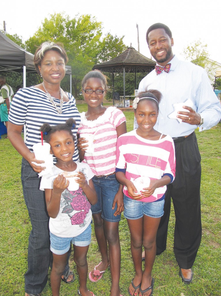 Pictured: The new Fairfield School District’s Superintendent J.R. Green, right, showed up with his wife Tonya, left, and their daughters Jacia, 7, and twins Jamara and Janelle, 11