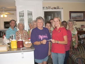 As he has in the past, Tommy Myers, Bonnie’s husband of 36 years, cooked hotdogs on the grill for the group. Also served were condiments and chili, coleslaw, potato chips and baked beans. And what would a luncheon be without desserts, which included pineapple cake, pecan pie, key lime pie and blueberry and banana cake.