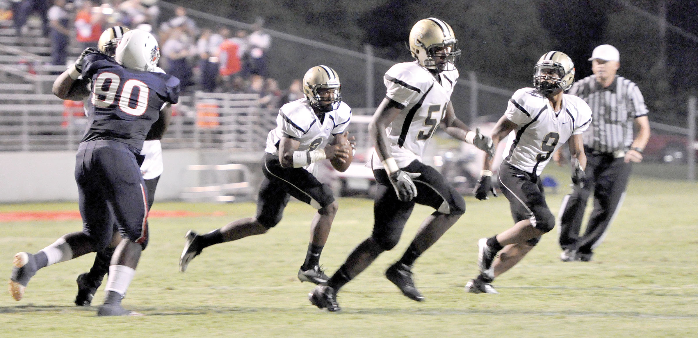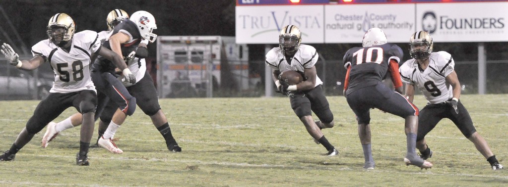 Following the turnover, the Griffins were helped by two successive running plays resulting in a first down. A handoff from Belton to Larry G. Bell brought the Griffins to the Chester 42-yard line. The Griffins further benefited by an off-sides penalty against Chester’s DeAndre Minter.