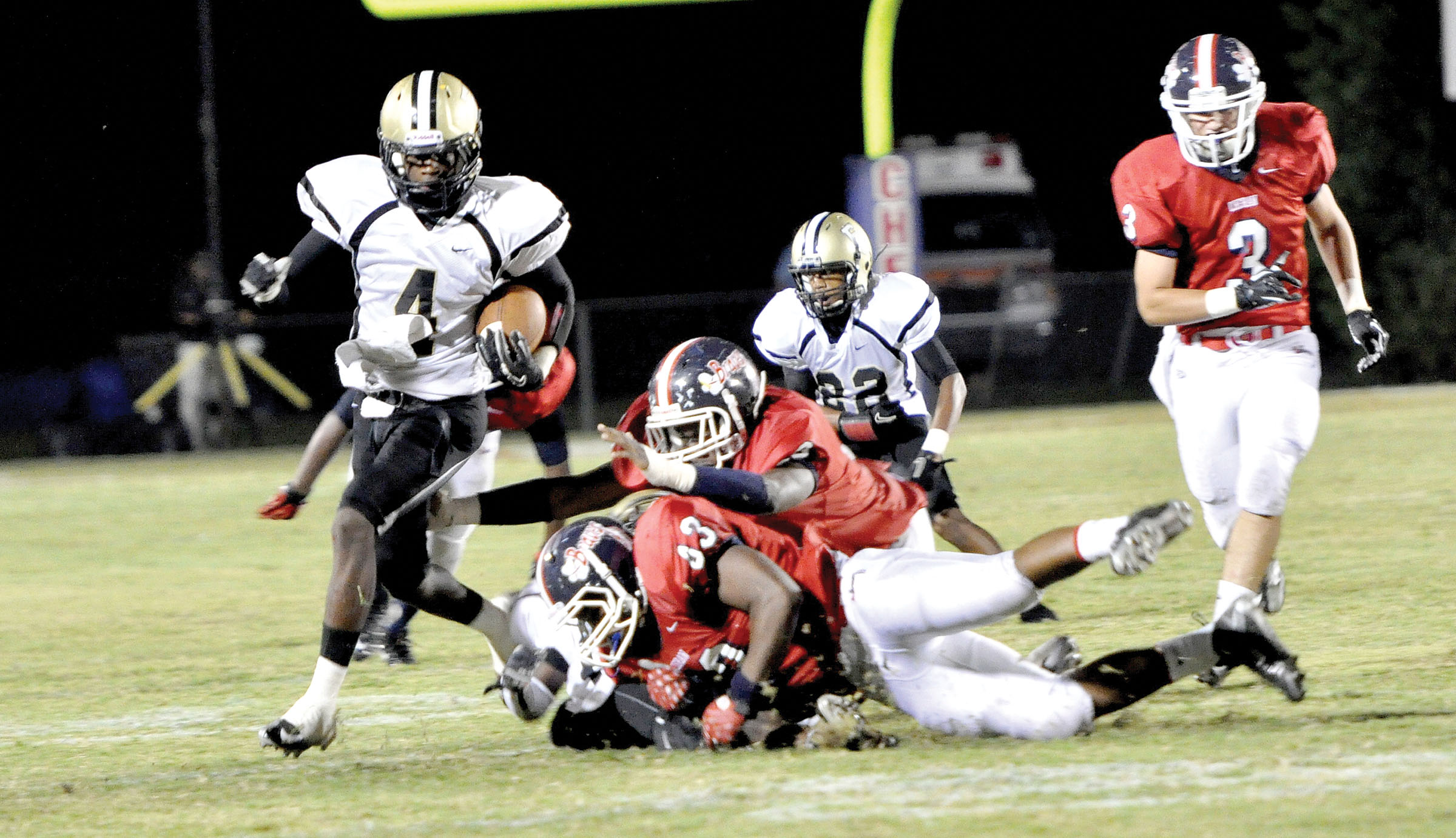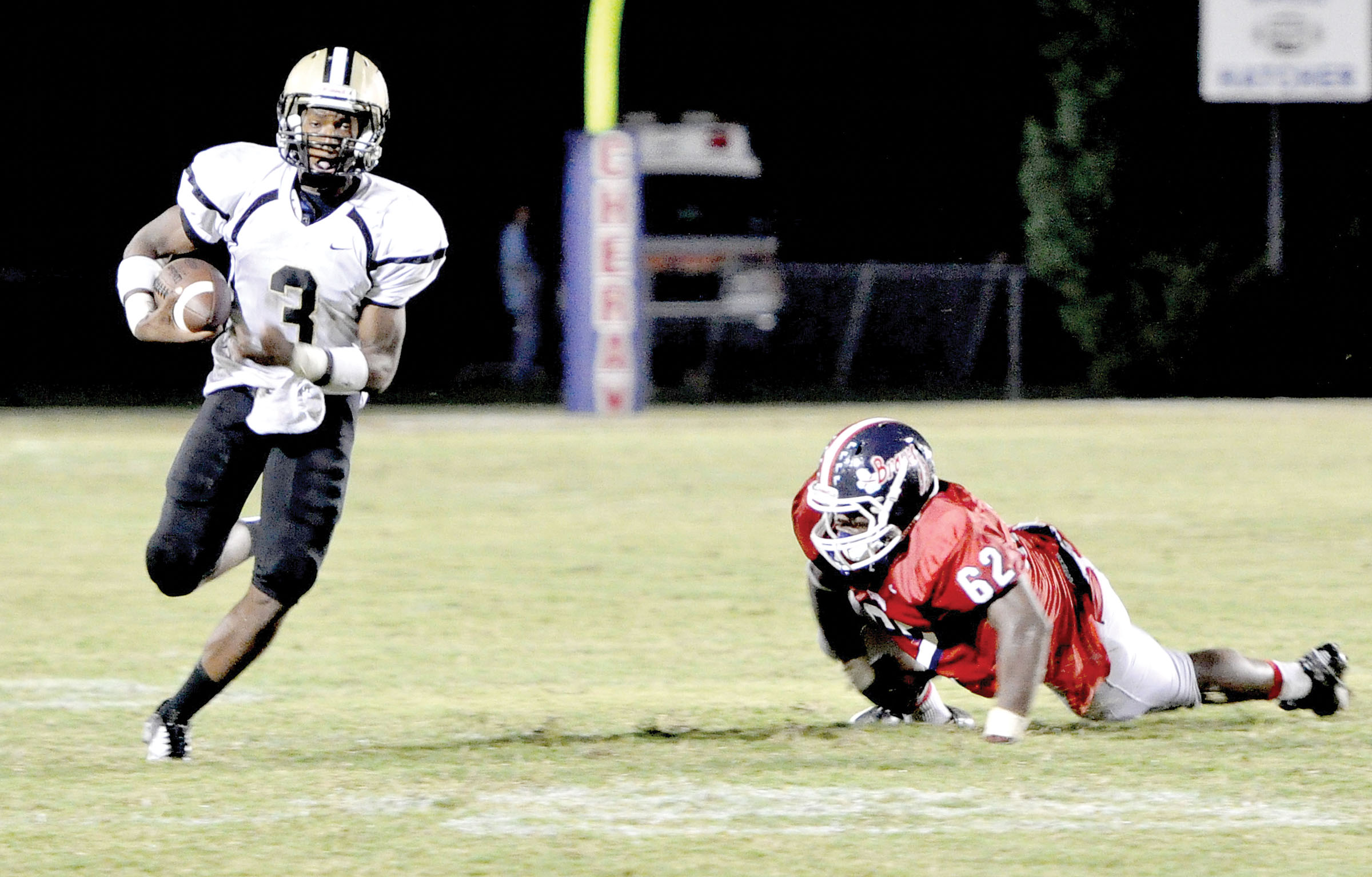 The Griffins stretched their lead to 14-0 when Bell capped a nearly 3-minute drive with his first of three touchdowns on the night, this one from 4-yards out with 3:49 left in the half. Bell earned his second a little over 2 minutes later on a 9-yard run, punctuating a lightning 49-second, three-play drive that began on the Cheraw 39.