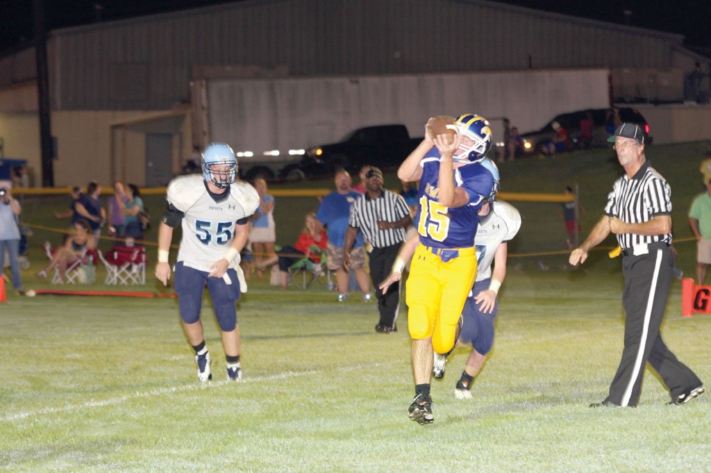 The King Academy Knights literally “made a night of it” as they routed the Richard Winn Eagles at their home nest Friday, 56-14. The Knights from Batesburg came into the game with a 3-0 record, averaging over 60 points per game to their opponents’ 19. On the other side of the spectrum, the Eagle team remains hungry for their first win. The Eagles knew they were facing a formidable opponent in their showdown with the region foe Knights.