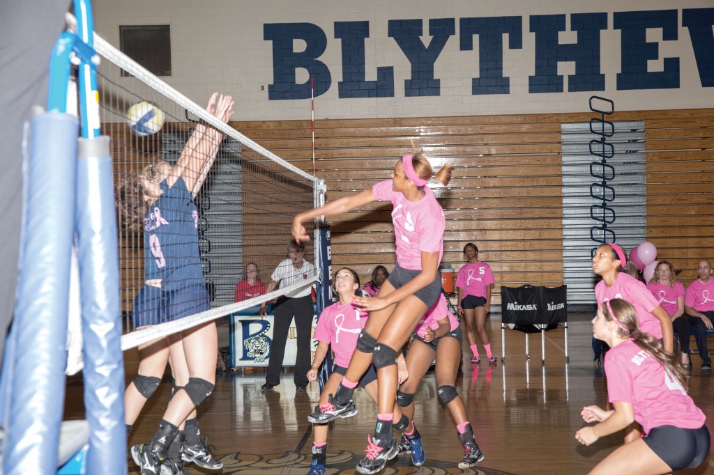 The Blythewood Lady Bengals volleyball team stayed undefeated (8-0) in region play Tuesday night, beating Lugoff-Elgin three games to one (25-21, 25-12, 22-25 and 25-17) to run their overall record to 33-5. The win was even sweeter because it was on their “Dig Pink Night,” which is an event to raise funds and awareness for breast cancer. The Lady Bengals wore pink shirts, sweatbands and socks to honor the cause. After the game Blythewood head coach Mary Hall talked about how successful the night was, giving a lot of credit to the Lady Bengal’s parents.