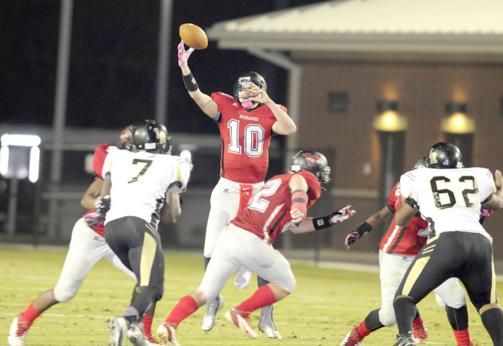 Ugly play continued as Gilmore was hit hard on a quarterback keeper, causing him to fumble. Westwood recovered the ball. Westwood could do little in the way of offense, and a Davis King pass was intercepted by Lawrence Tucker, giving Lower Richland a first-and-10 on the Westwood 45-yard line with 3:19 to go in the quarter. The teams traded interceptions when Vyncint Smith intercepted a Hornets pass on Westwood’s own 7-yard line. The Redhawks possession ended with a very short punt that went out of bounds on their own 35-yard line, handing over good field position to Lower Richland. Lower Richland couldn’t capitalize, however, and had to punt. The quarter ended with the ball in the hands of Westwood on their own 13-yard line.
