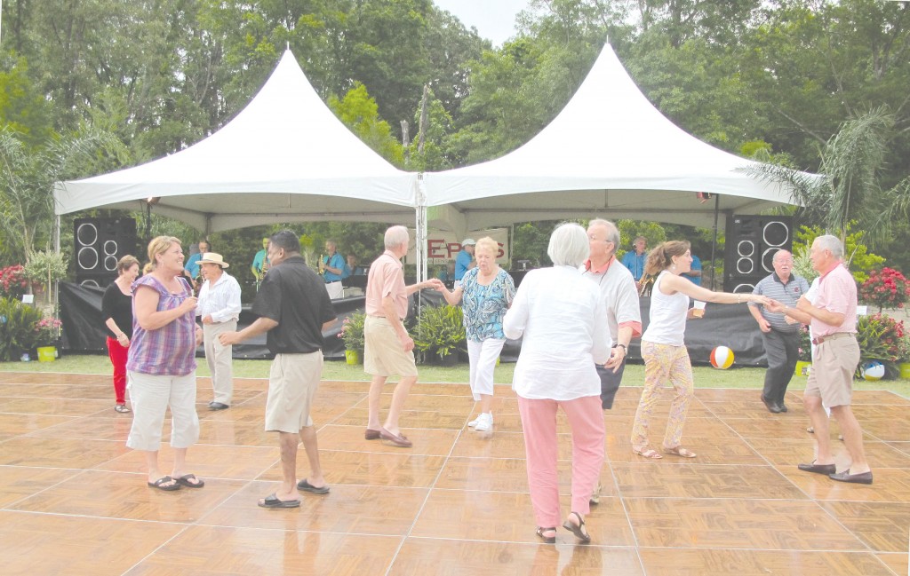 These beach music lovers danced in the rain as the band played on. The Sensational Epics entertained for more than an hour before steady rain set in last Saturday evening in Cobblestone Park.