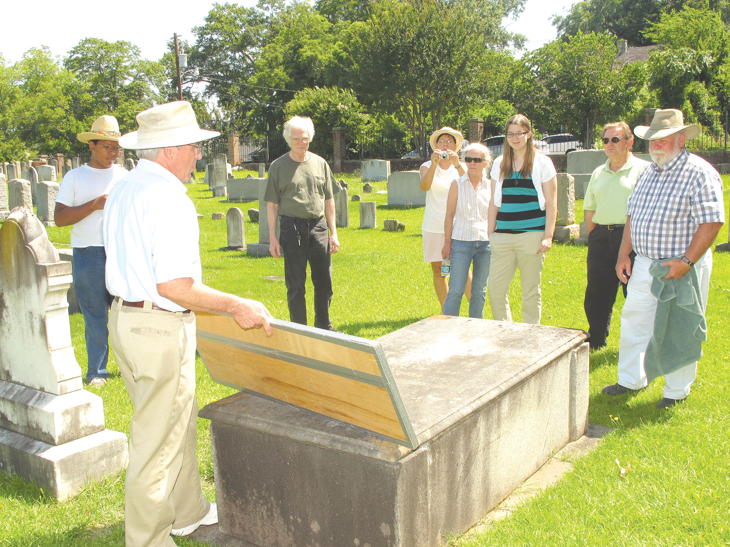 When tombstones become old and the engravings begin to wear away, it can become difficult to impossible to identify an ancestor’s resting place. During a hands-on workshop Saturday in the graveyard of Sion Presbyterian Cemetery in Winnsboro, Genealogist Jon Davis showed members of the Fairfield Genealogical Society how to decipher lettering on weathered stones, no matter how faded and worn.