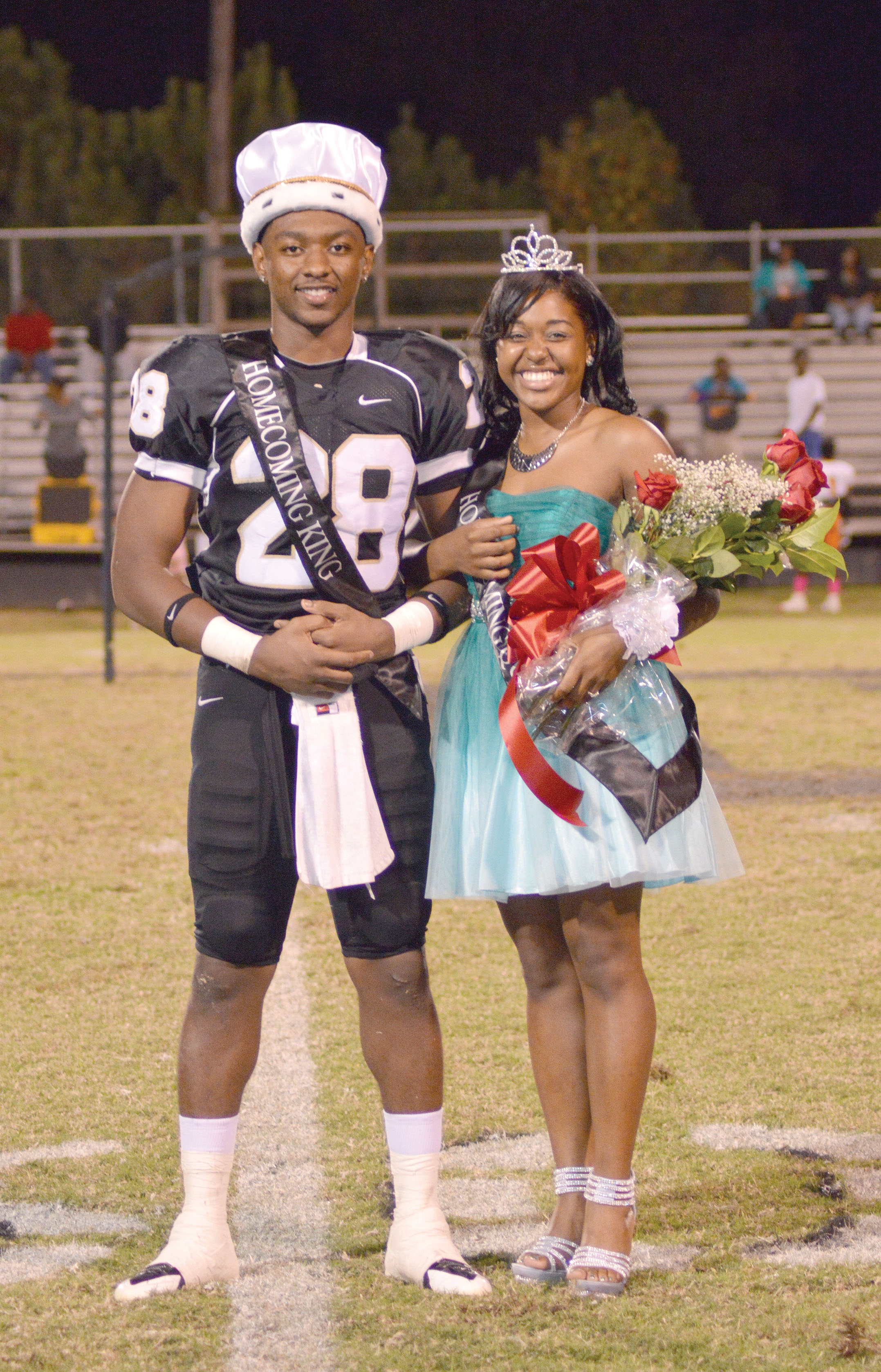 Larry G. Bell (left) and Nytorria Jeter were crowned Fairfield Central High School’s 2013 Homecoming King and Queen during last Friday night’s halftime festivities. Their Court consisted of Shaquetta Ruff and Randanion Sampson, Freshman Princess and Prince; Michaela Simpson and Tony Trapp, Sophomore Princess and Prince; and Shantorrah Davis and Davoris Owens, Junior Princess and Prince. The Griffins put a bow on the evening by throttling Eau Claire High School 58-6.
