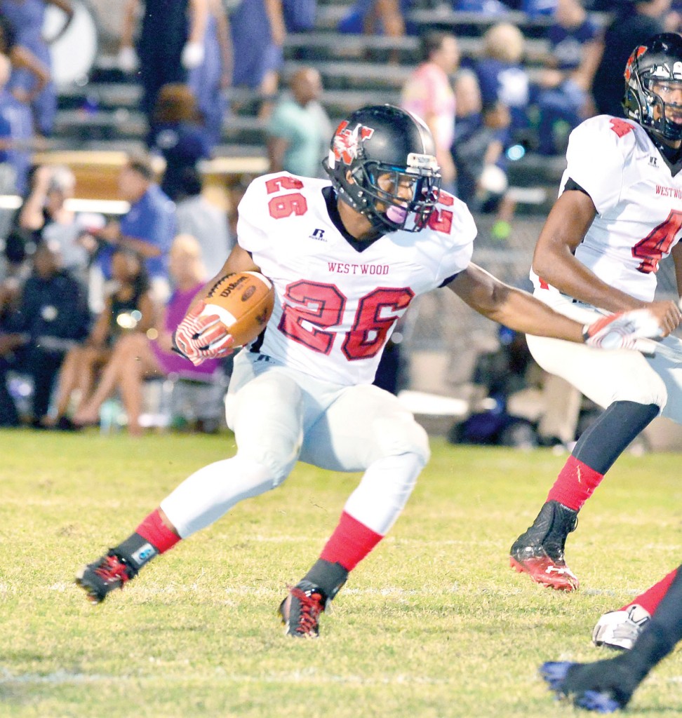 The ‘Hawks got things rolling Friday with a 1-yard touchdown carry by Christian Brown. The run capped a 10-play, 68-yard drive and Brandon Howard’s kick put Westwood up 7-0 with 7:45 remaining in the opening quarter. Brown would finish the night with 173 yards on the ground on 31 workhorse carries.