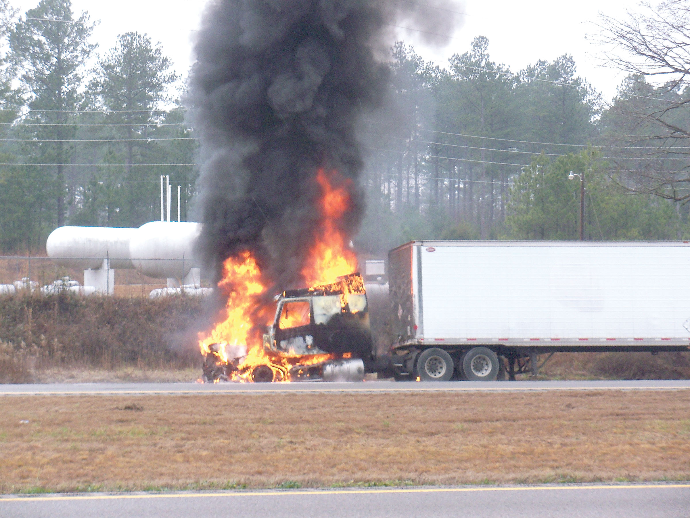 Traffic along I-77 south near exit 32 (Peach Road) slowed to a crawl last Thursday morning as flames engulfed a truck hauling cardboard boxes for IMS Trucking Co. The Greenbrier, Community and Ridgeway fire departments responded to the blaze, which the Fire Marshall’s Office estimated caused approximately $30,000 in damage. The driver of the rig was not injured and the cause of the fire was not known at press time.
