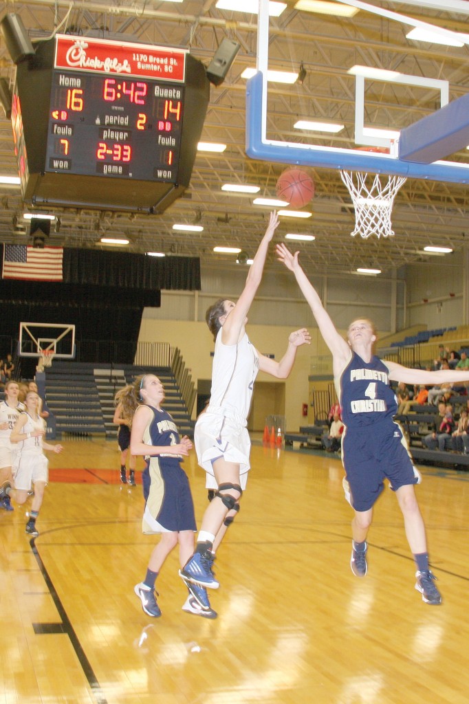 RWA Senior Carson Justice drives to score a layup early in the second quarter against Palmetto Christian Monday to put the Lady Eagles up by four points. (Photo/Martha Ladd)