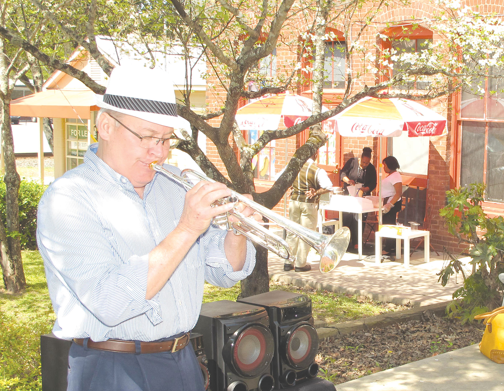 It was like New Orleans in Ridgeway on Saturday as shoppers were treated to the trumpet sounds of Dennis Bright, a Ridgeway resident. Bright played for appreciative passersby outside The Town Hall Restaurant. Behind him, the restaurant’s owner, Vesha Sanders, is busy dipping ice cream into waffle cones just off the griddle for hungry shoppers.