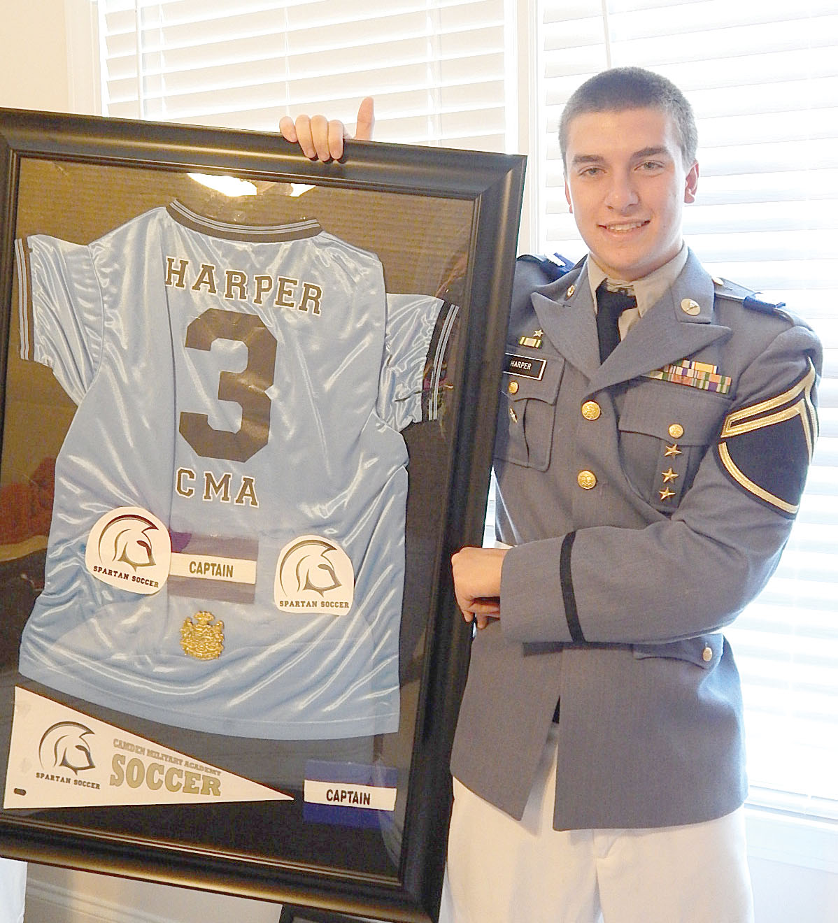 Blythewood resident Jake Harper has attended Camden Military Academy (CMA) for the past two years and recently became a member of their Sports Hall of Fame. Harper is the second soccer player to have his jersey number retired in the 18 years that coach Tom Hewett has been at the helm for CMA. In addition to his soccer accomplishments, Harper also received both the football and soccer Most Valuable Player awards and was named the CMA ‘Athlete of the Year.’ Described by coach Hewett as a “coach’s dream” and the “best player that I have ever coached,” Harper scored 44 goals and had 18 assists over the two seasons he played for the Spartans. During that time, Harper led the team to an impressive 38-5 record. Harper, an honor roll student at CMA, will attend Coastal Carolina University in the fall. He is the son of Richard and Tammy Harper.