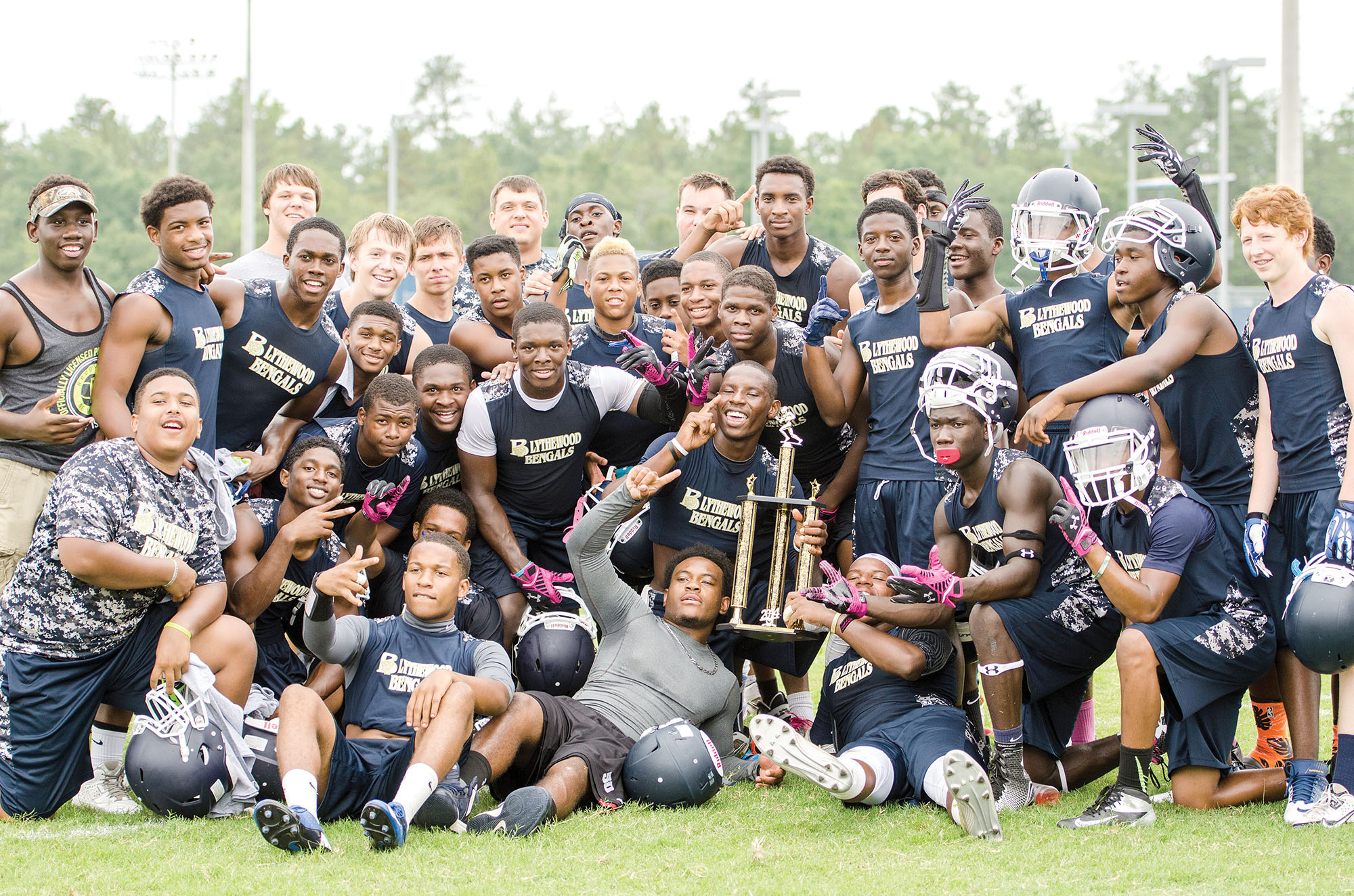 The Bengals’ 7-on-7 squad celebrates their tourney win on July 25.