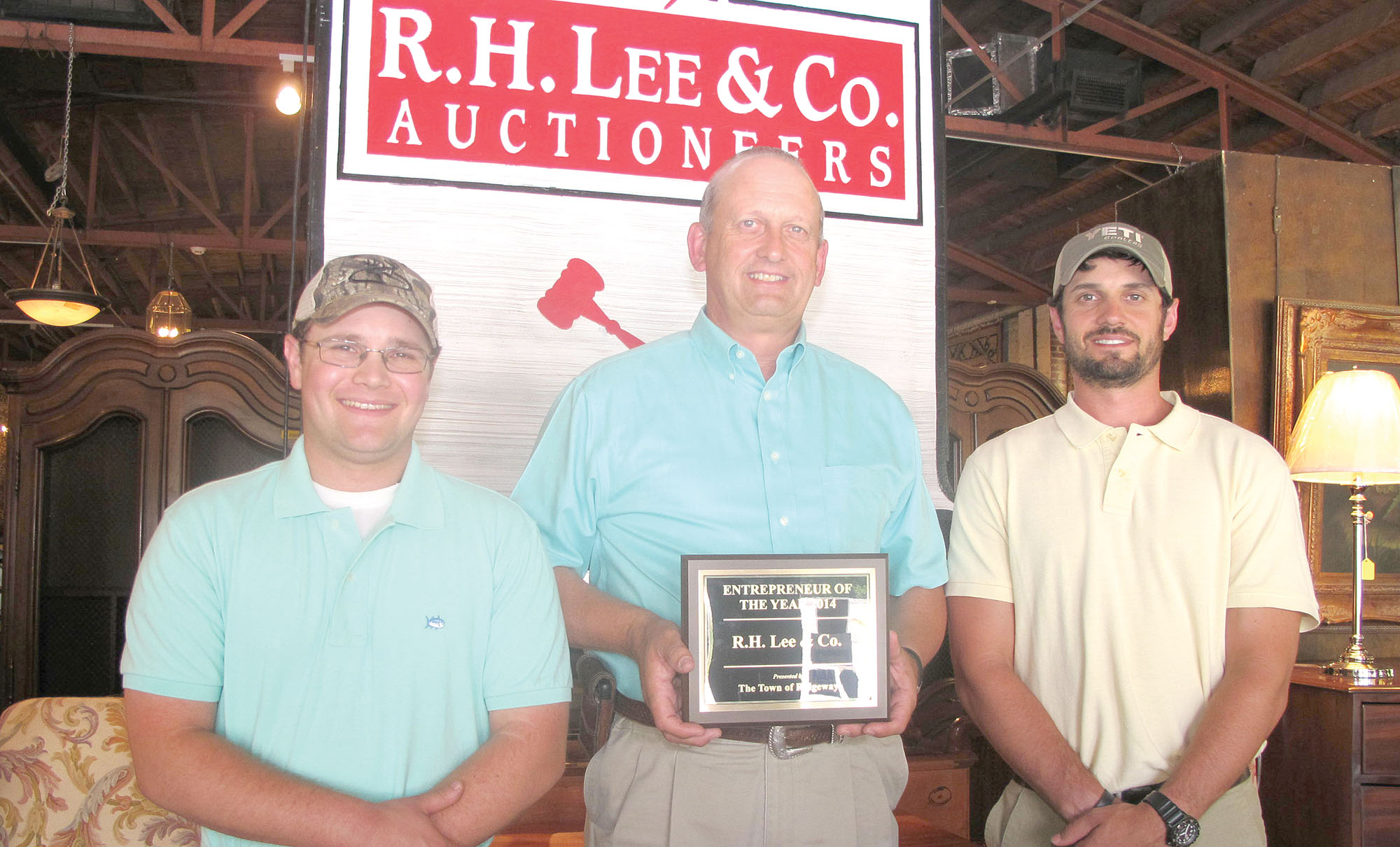 Auctioneer Rodney Lee (center) holds the Town of Ridgeway’s 2014 Entrepreneur of the Year Award for his family owned and operated business, R.H. Lee and Company. With Lee are his sons, Jake (left) and Justin, who are an integral part of the business’s day-to-day operations.