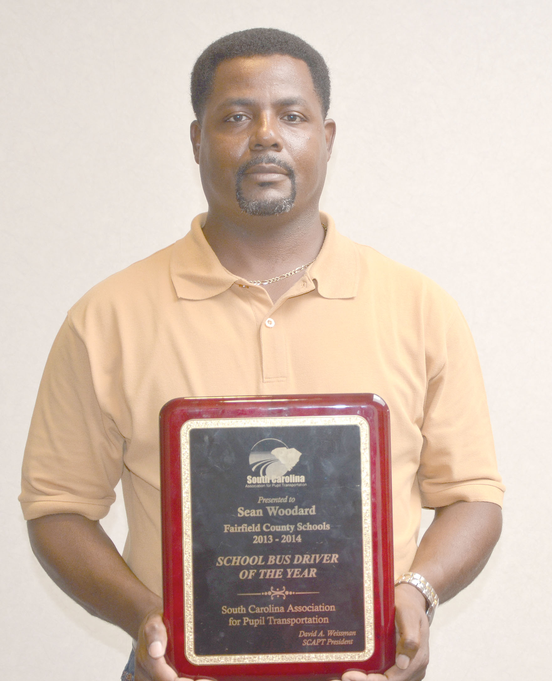 Fairfield County School District bus driver Sean Woodard was recently named Bus Driver of the Year for the state by the South Carolina Association of Pupil Transportation (SCAPT). Woodard is the first Fairfield County School District driver to earn the award, according to Superintendent J.R. Green, who recognized Woodard at the School Board’s July 15 meeting.