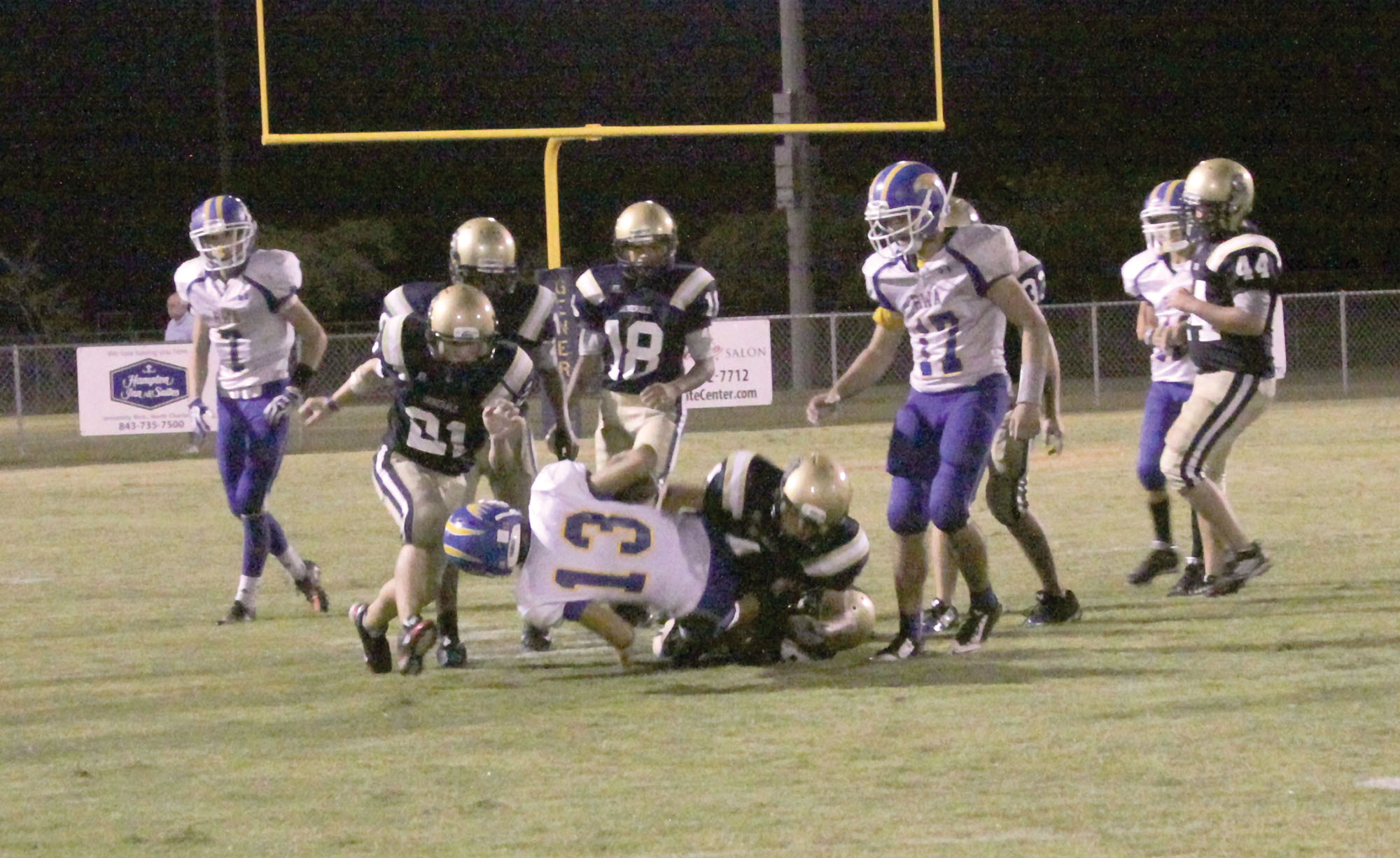 The Eagles added one more score to their tally by turning disaster into points. Having driven the ball to the Generals’ goal line, the Eagle offense coughed up the ball in the end zone. Coker Gilbert alertly pounced on the loose rock to give the Eagles a 52-22 lead with 10:25 left in the game.