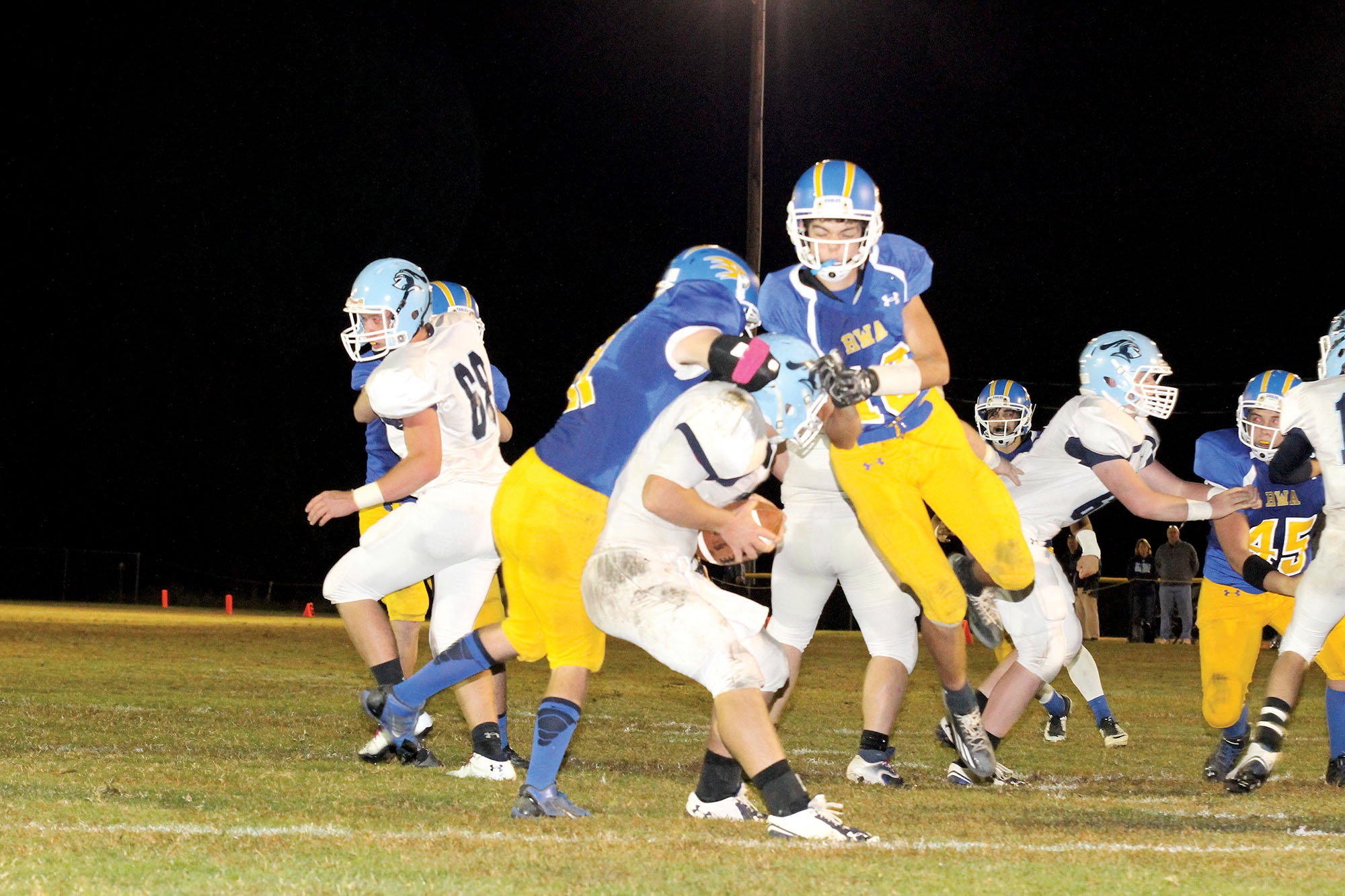 The Eagle defense made life tough for King Academy quarterback Connor Fox Friday night. (Photo/Martha Ladd)