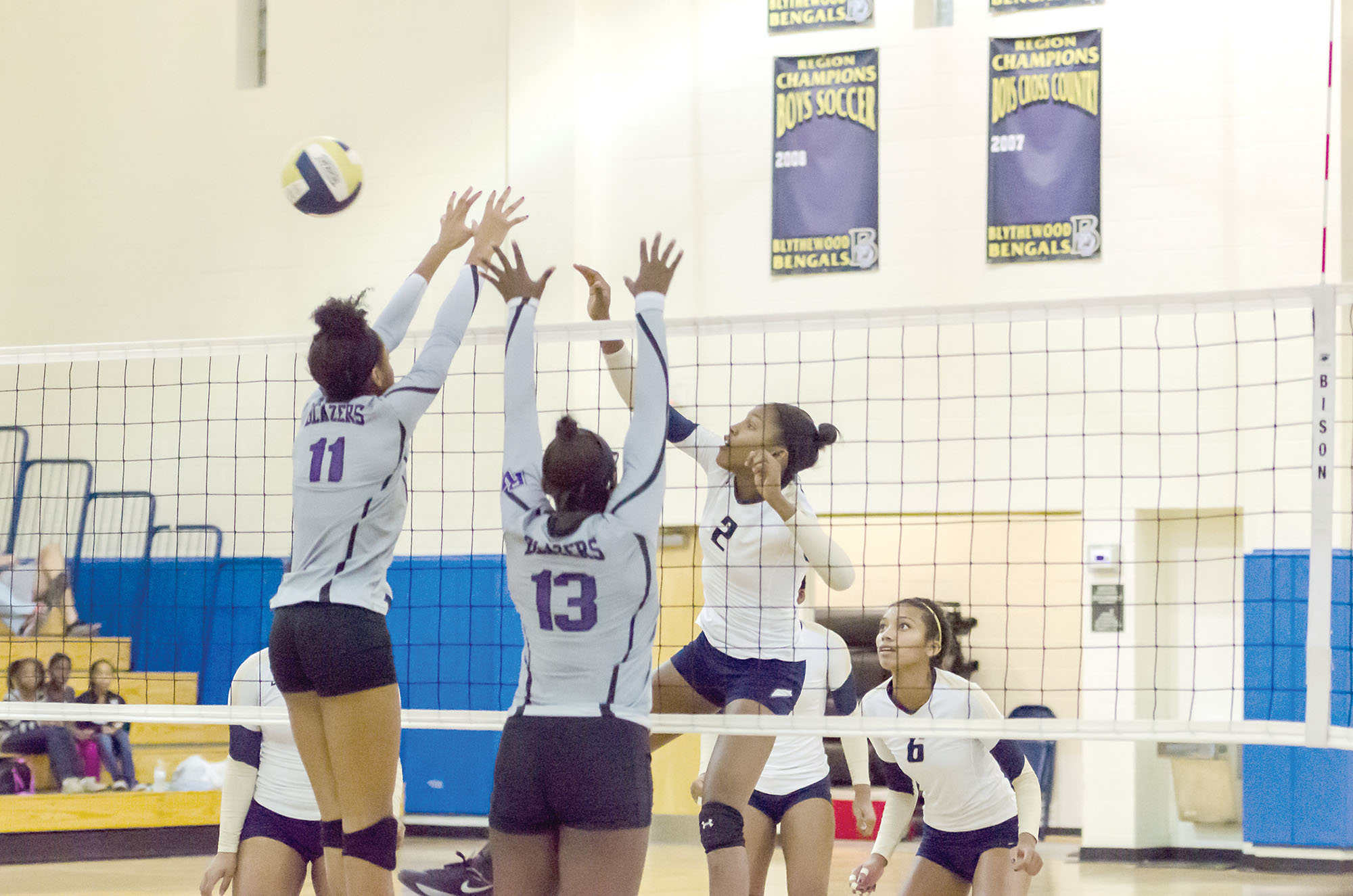 BHS freshman Gabby Waden (2) tips one back over the Ridge View defense as Bijonae Jones (6) watches intently. The Lady Bengals prevailed in straight sets Tuesday night, 25-15, 25-16, 25-13.