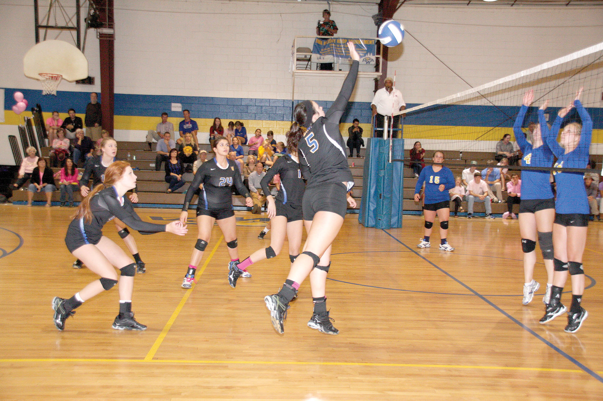 Additionally, another special event took place this same evening. In recognition of October’s Breast Cancer Awareness month, the varsity volleyball team wore special pink pre-game shirts and honored RWA faculty member Amelia Ellison prior to the match in support of her ongoing battle against breast cancer.