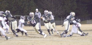 In the second quarter, the Griffins opened up the passing game. Stanley McManus, who threw for 133 yards on the night, lit up the Rebels with three touchdown strikes in the second – two to Shadarius Hopkins and one to Byron Sampson – to give Fairfield Central a 34-0 halftime lead. The performance of McManus and the entire Griffin offense was a far cry from the 7-0 squeaker they pulled out against Mid-Carolina on Halloween night.