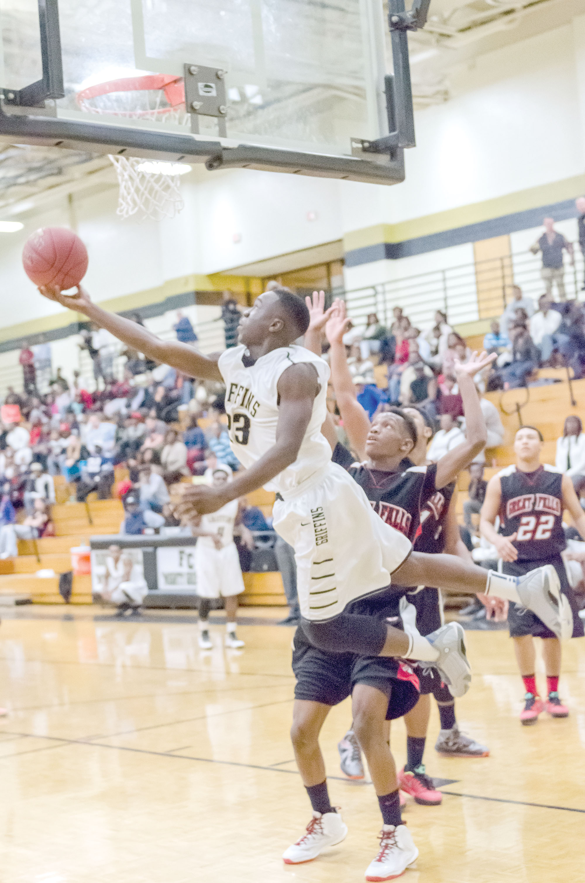 Great Falls took their final lead with 2:50 left to play when Deandre Perry drew a foul on his way to the basket. The bucket was good, and Perry made the free shot count, giving the Devils a 50-48 edge. But seconds later, Brandon Adams nailed a 3 to give the Griffins the lead for good, 51-50, with 2:34 to play.