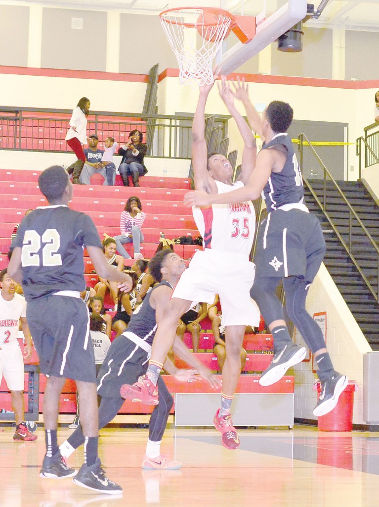 Westwood’s senior center Richie Finch (35) bangs the boards against Lower Richland Saturday. The Redhawks topped the Diamond Hornets, 44-37. Monday night, L-R got its revenge, edging Westwood 53-51 in Blythewood. The Lady Redhawks, meanwhile, dropped the pair, 44-27 Saturday and 65-29 Monday. The ‘Hawks travel to RNE Monday for a 6 p.m. tip.