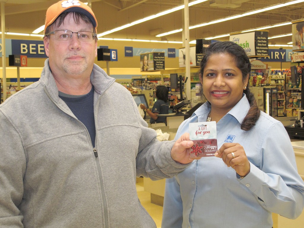 As the winner of The Independent Voice’s Holiday Subscription contest, subscriber Les Wilkes of Blythewood receives a $50 gift card from the Blythewood Food Lion Customer Service Manager Mary Fullard.
