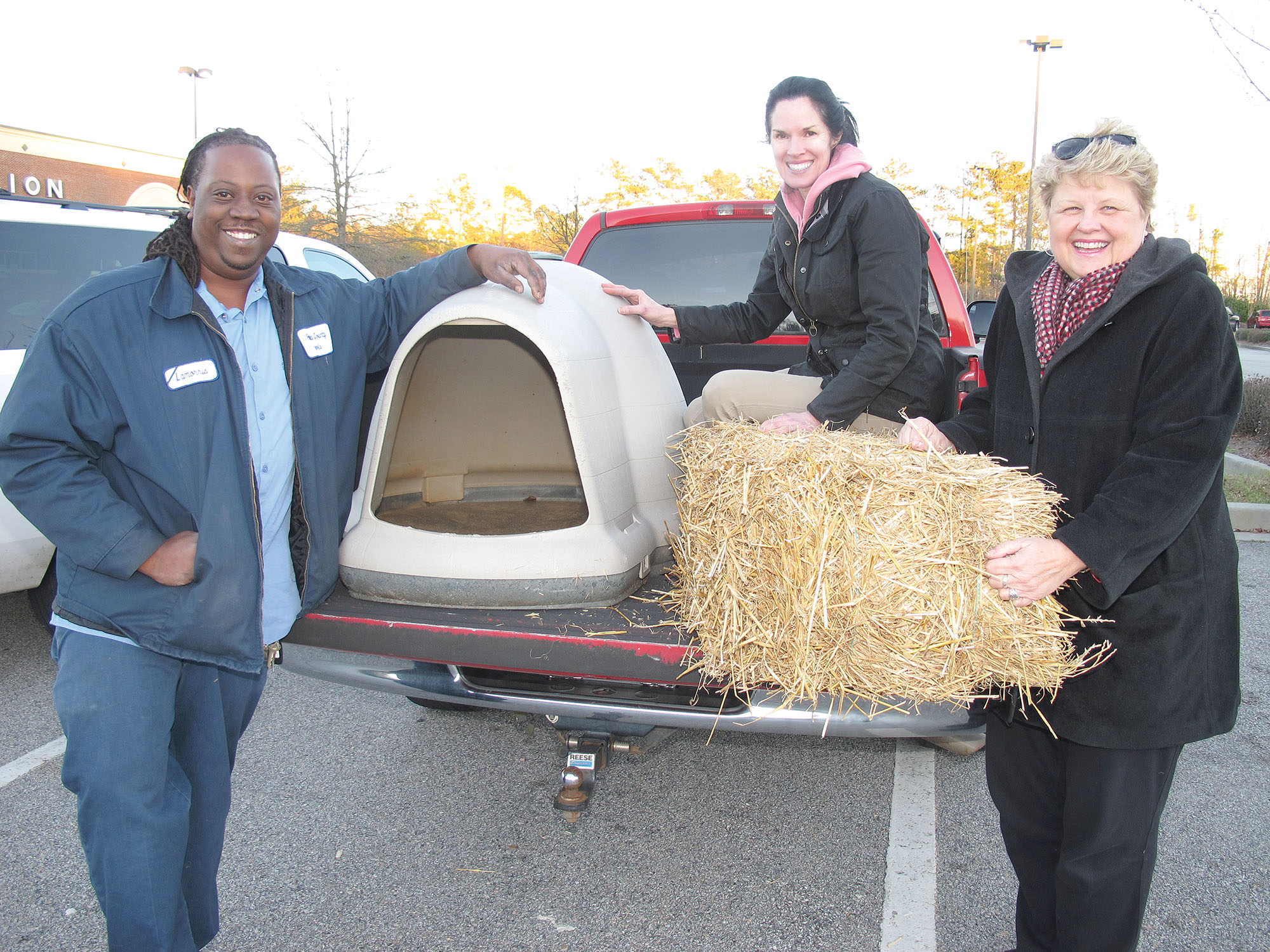 With cold weather bearing down, Hoof & Paw Benevolent Society members Paula Spinali, center, and Deborah Richelle presented a gently used (but free!) dog house and straw bedding to Lamorris Holley of Winnsboro for his recently adopted 5-month old puppy, Baybay. Holley, employed in the maintenance department of Fairfield Central High School, adopted the puppy from the Fairfield County Animal Shelter two months ago and needed a backyard shelter for Baybay who lives outdoors. While walking through Ernest Manning’s Small Animal Class in the school’s Career Center, Holley noticed a poster about Hoof & Paw’s efforts to help pet owners provide shelter for their outdoor pets. That was Baybay’s lucky day. Now he has a snug backyard house and a warm, fluffy bed of straw for a good night’s rest during cold winter nights. For more information about the shelter program, call Hoof & Paw at 803-260-3403.