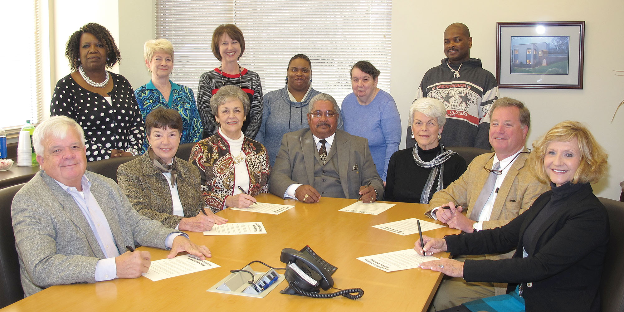 The month of March was proclaimed Disability Awareness Month by the Fairfield County Disabilities and Special Needs Board members and Winnsboro and Fairfield County elected officials. Signing the proclamation are, seated: Winnsboro Mayor Roger Gaddy, State Rep. MaryGail Douglas, County Council Chairwoman Carolyn Robinson, Jenkinsville Mayor Gregory Ginyard, County Councilwoman Mary Lynn Kinley, State Sen. Creighton Coleman and Ridgeway Mayor Charlene Herring. Standing, from left: Shirley Kennedy, DSN Board President Vicky Robinson, DSN Executive Director Laura Collins, Tiffany Johnson, Jeanette Cook and John Mickle.