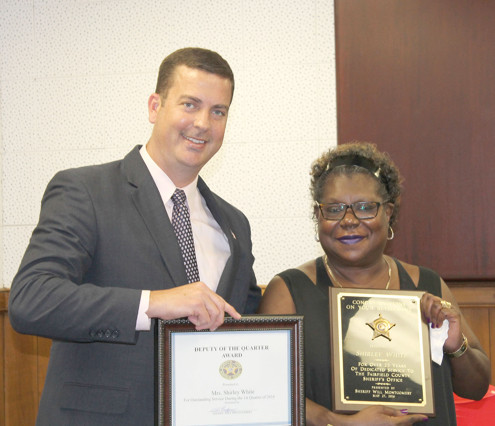 Ms. Shirley White retired from the Fairfield County Sheriff’s Office on May 27. White served as a Dispatcher for several years, when that office was under the direction of the Sheriff. She then transferred from Dispatch to the receptionist position. She dedicated over 25 years of service to the Fairfield County Sheriff’s Office. “Ms. Shirley will definitely be missed by all of us,” Sheriff Will Montgomery said. “I wish her well in her retirement.”