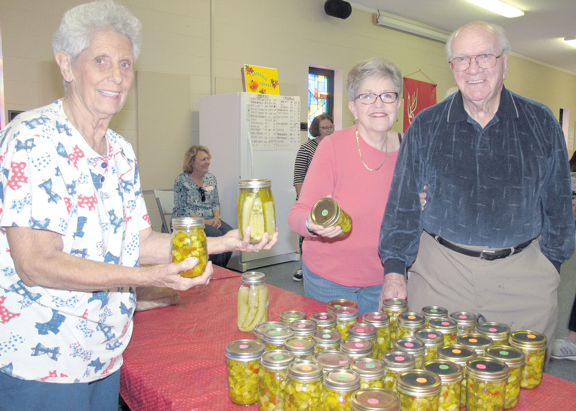 During Fairlawn Methodist Church’s Country Store sale last weekend, Barbara Beckham and her dad, Robert Moak, selected a jar of home-grown, home-preserved pickles with the help of church member Kay Hollis.