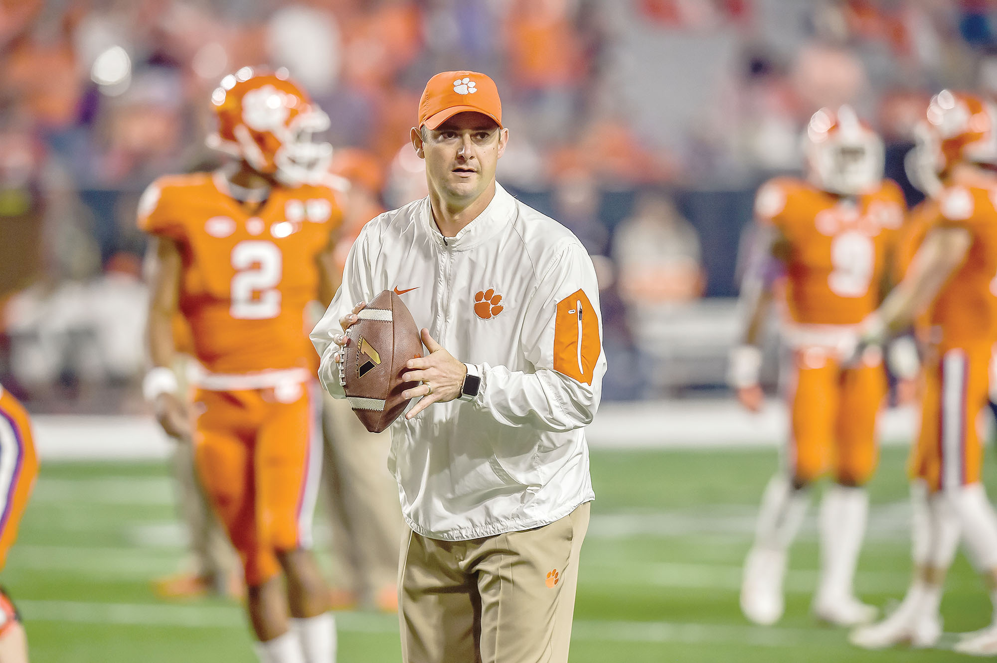 Former Blythewood High School head football coach Jeff Scott (left), who led the Bengals to their only state title in 2006, has been instrumental in Clemson’s championship run this season as Co-Offensive Coordinator. Scott’s offense racked up 511 total yards Monday night in the Tigers’ 35-31 win over Alabama. Sophomore linebacker Jalen Williams (right), another former Bengal, played in 10 games for the Tigers this season, with one start. In his time on the field, he had 24 tackles and two pass break-ups.