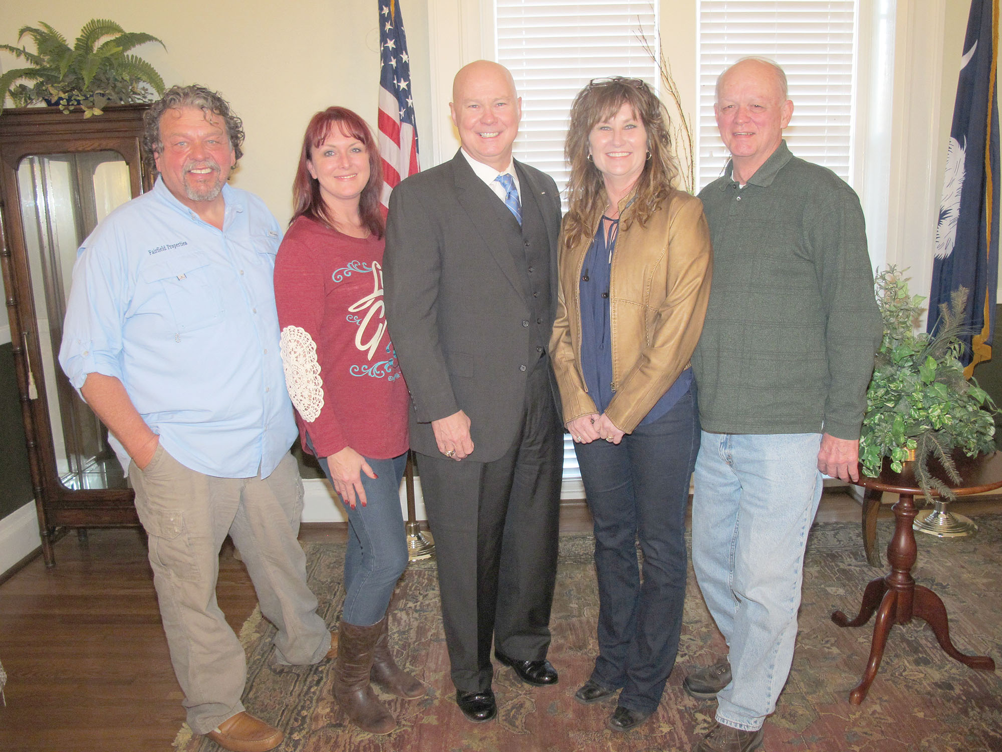Republican Tom Mullikin, center, managing partner with Mullikin Law Firm in Camden, announced his candidacy Tuesday evening for the U.S. House of Representatives in South Carolina’s 5th Congressional District, a seat currently held by Mick Mulvaney. Mulvaney has recently been nominated by President Donald Trump to become head of the Office of Management and Budgets. The announcement was made during a reception hosted by a bi-partisan group at Mission Ridge Country Club in Winnsboro. With Mullikin are: the Rev. Jimmy Burroughs (Director, Good Samaritan House), Vanessa Reynolds, Wanda Carnes (owner and broker for Fairfield Properties) and Fairfield County Councilman Jimmy Ray Douglas.