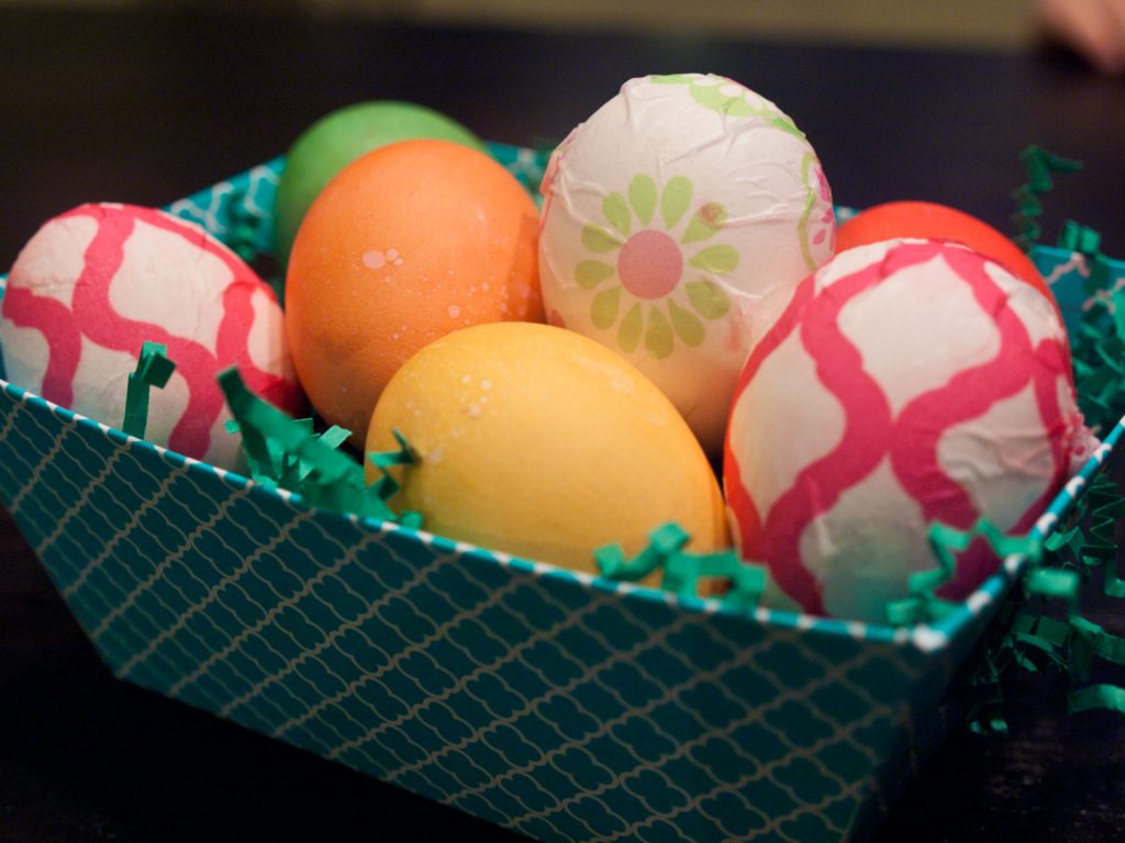 We made these eggs, and every single egg turned out wrinkled; this is precise work and may not be suitable for those who are not perfectionists or toddlers. But they are gorgeous, and while Martha may not be pleased with our wrinkled napkin eggs, I can’t help but think The Easter Bunny will be thrilled.
