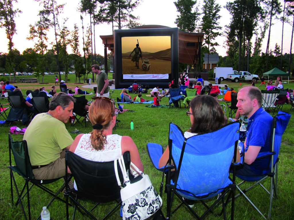 Jerry and Eileen Rega, left, visit with friends as they watch a Star Wars movie in Doko Park – ‘The Force Awakens’. -Photo by Barbara Ball