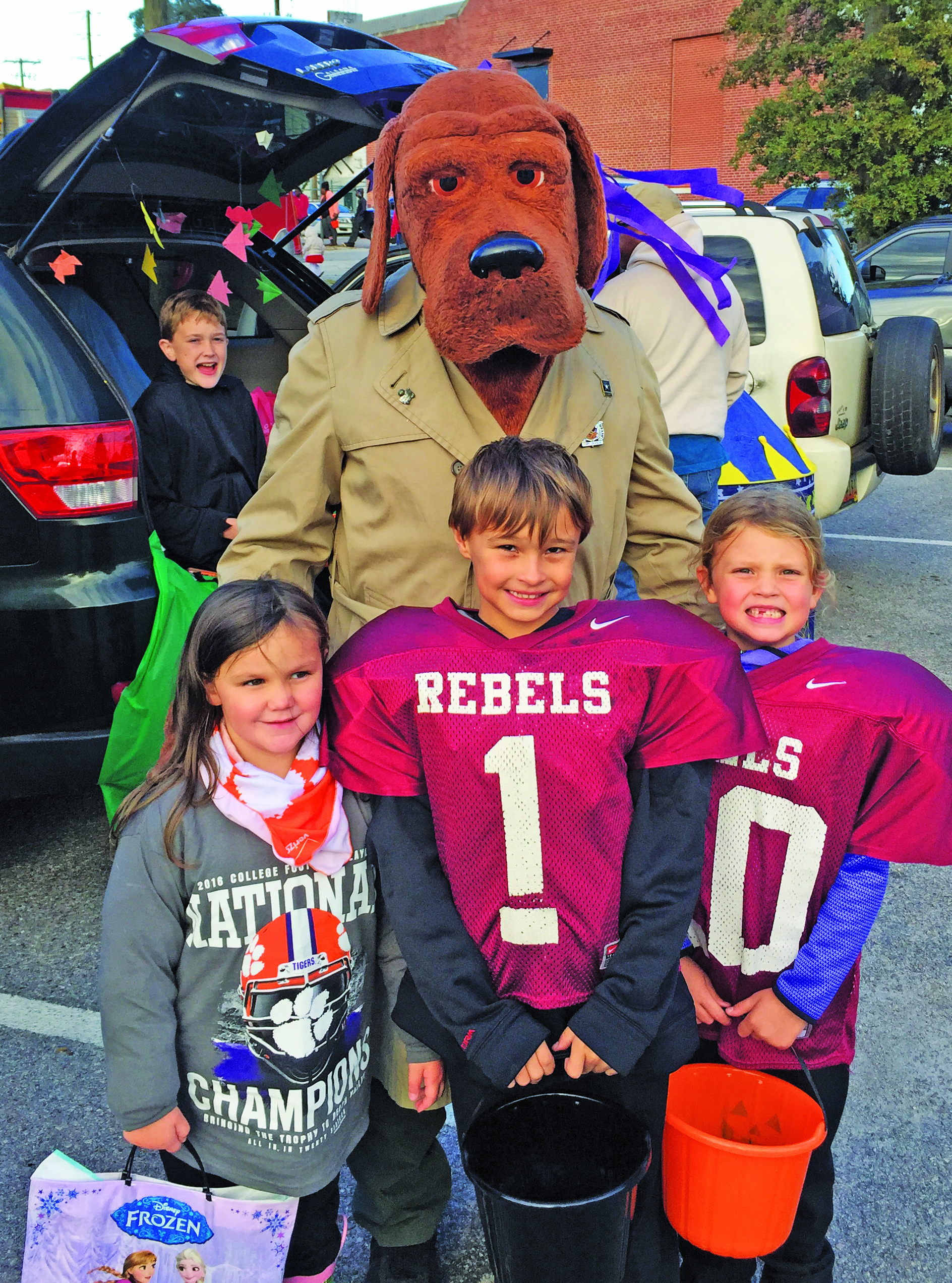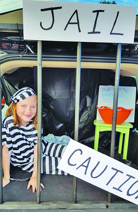 - Caitlyn Talbert gives out candy from her jail-decorated trunk.