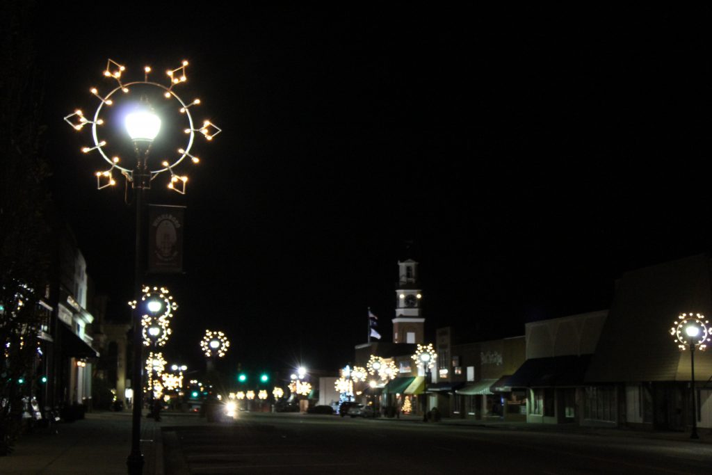 Downtown Winnsboro’s holiday lights add a festive spirit to Congress Street.