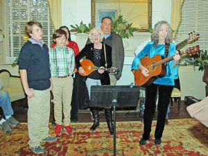 In the parlor, traditional holiday music was provided throughout the evening by local musicians including Laurens Livings accompanying her voice students and the Douglas Family singing carols.