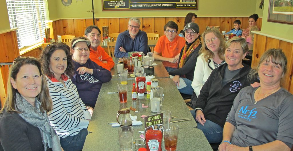 Lux’s rescuers were treated to breakfast by Lizard’s Thicket management. Rescuers, from left: Cilla Phillips, Amy Kennedy, Wendy and Rob Schisler, Mark Cruise, Robert Calahan, Kelly Cruise, Donna Browning, Cam Chappell and Chris Miller, Lux’s owner.