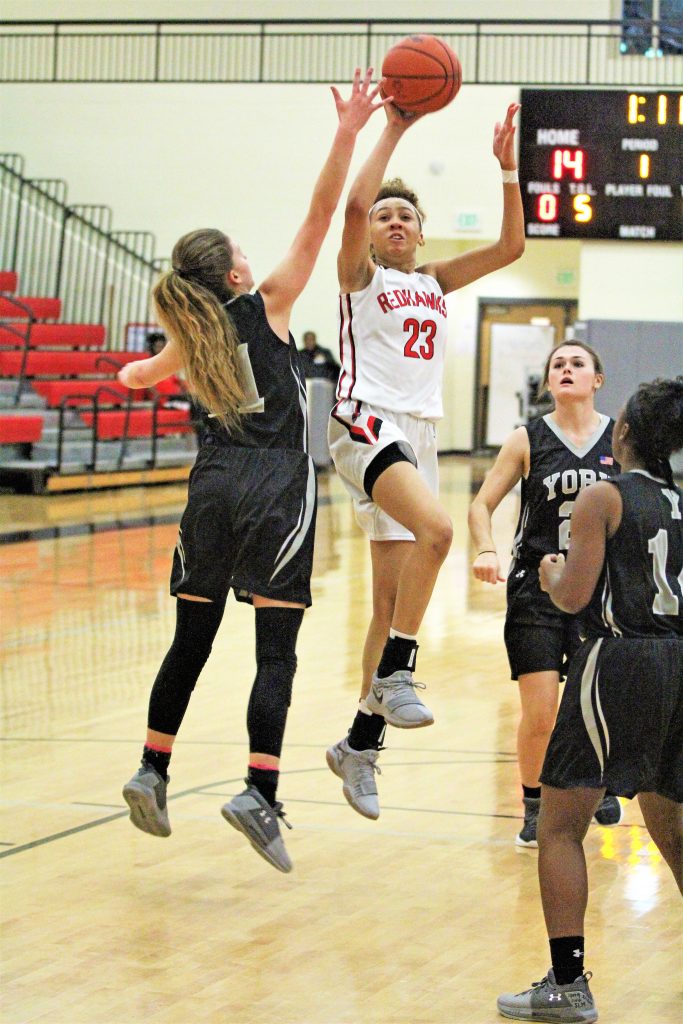 After a slow start in the first quarter, the Redhawks picked up their stride in the second quarter, outscoring the Cougars 24-4 to take a 40-15 lead at the half.