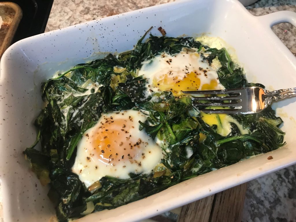Baked Eggs with Spinach and Leeks