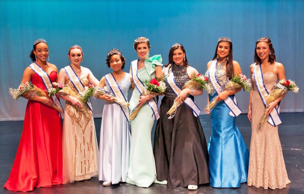 BLYTHEWOOD – Blythewood High School held their Mr. Blythewood and Miss Blythewood pageants on Jan. 27. Elizabeth Hunter, above center, was crowned Miss Blythewood. From left, she is surrounded by Miss Sophomore, Kristian Hardy, Miss Fundraiser, Clara Campagna, Miss Senior, Jaelyn Ellis, Miss Congeniality, Mollie Hanna, Miss Junior, Lauren Moak and Miss Grand Talent, Samantha Singletary.