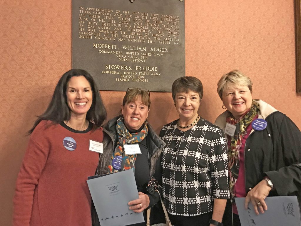 COLUMBIA – Fairfield County residents and Hoof and Paw Benevolent Society board members Paula Spinale, left, and Kathy Faulk and Blythewood resident and board member Deborah Richelle, right, joined Rep. MaryGail Douglas at the Humane Society Lobby Day at the State House in Columbia last week where they witnessed the Senate’s vote to pass the animal welfare bill S841 that addresses tethering, shelter restrictions and myriad issues of animal cruelty.