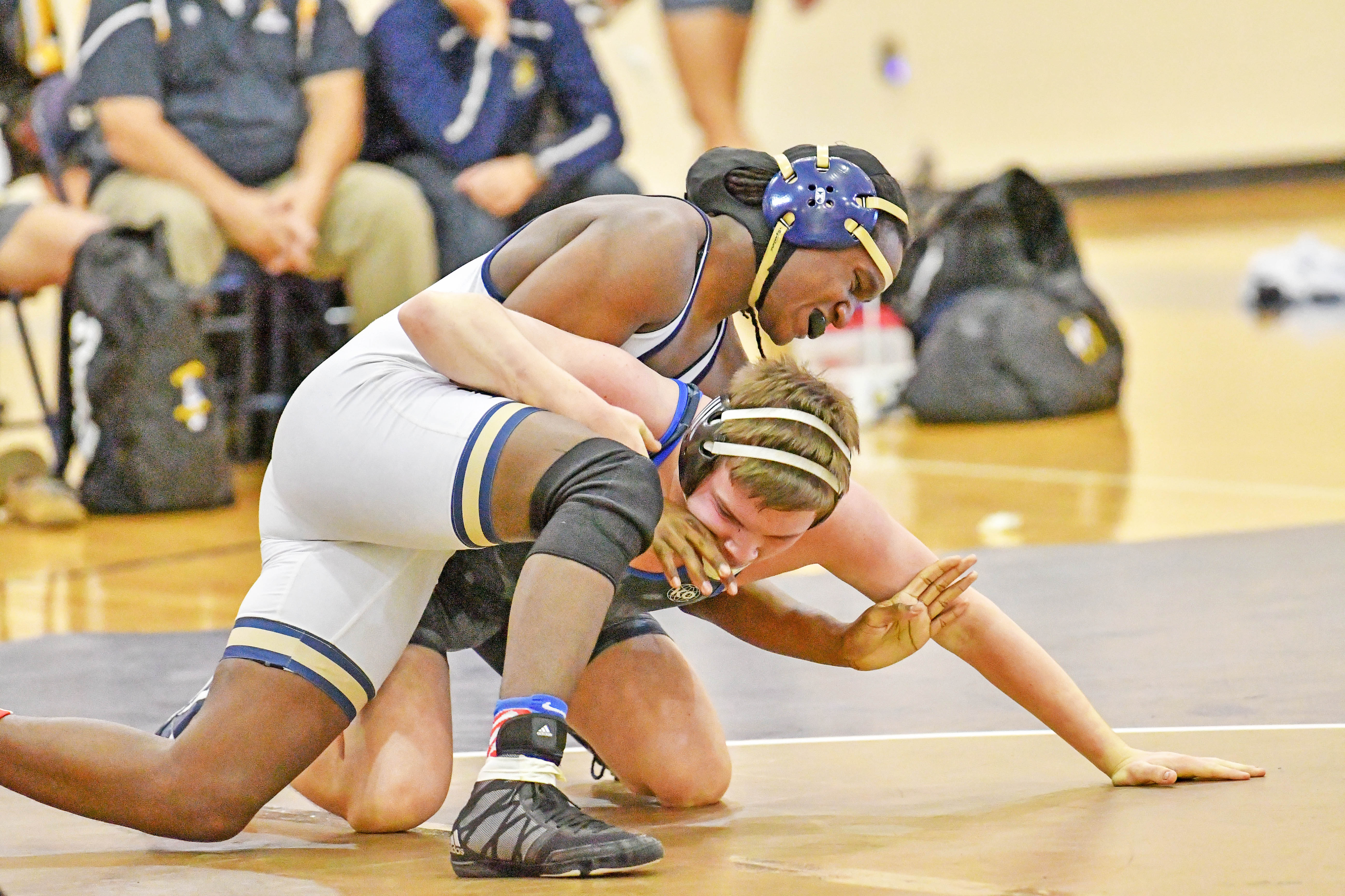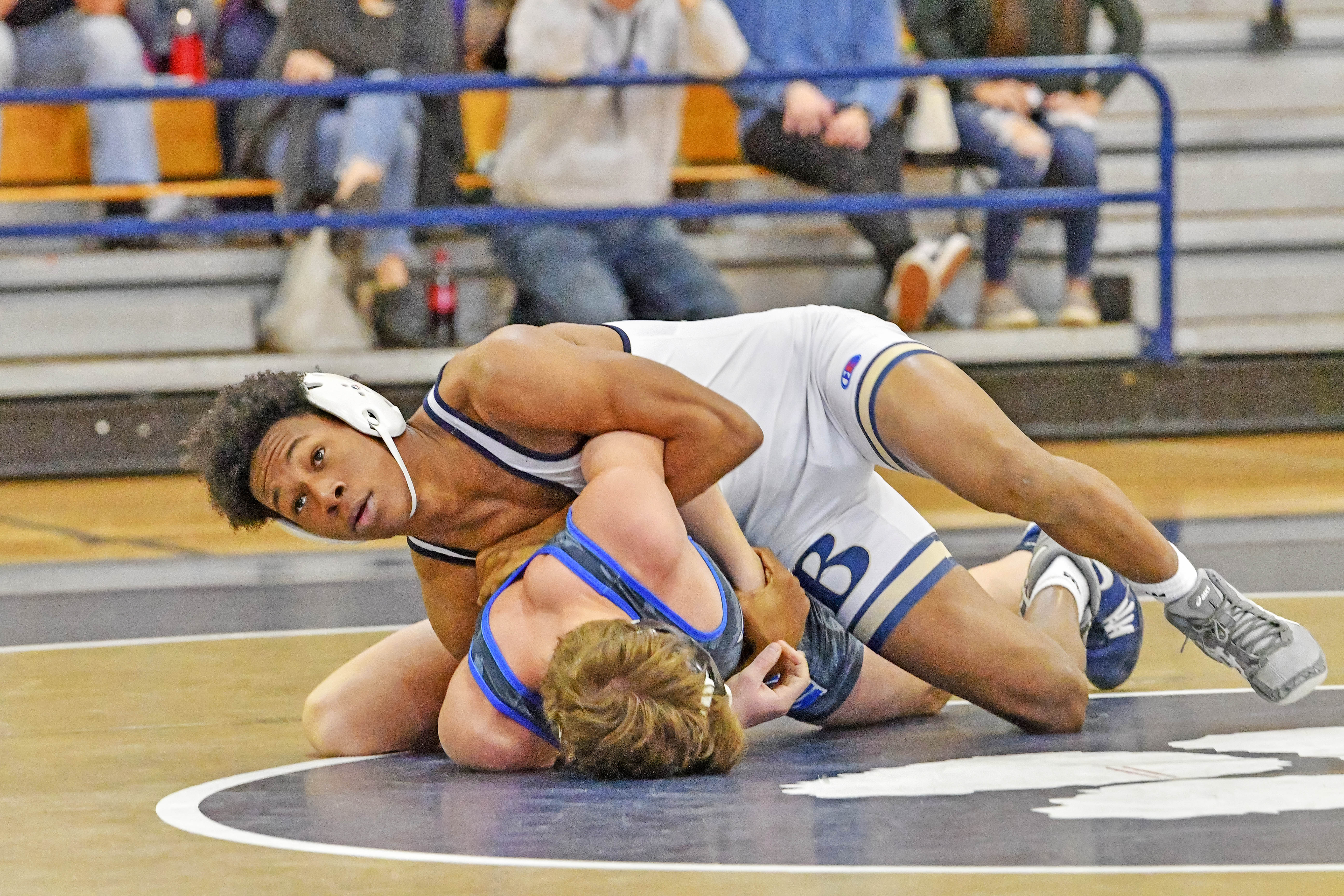 - Leshun McGreer works on his Wildcat opponent.