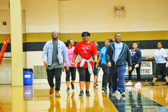 WINNSBORO – Kimberly Seibles, center, walks with students Curtis Martin, Jr., left, and Le’Aundre Martin during the annual FIT Family Event sponsored by the Elite Ladies of Fairfield County School District.