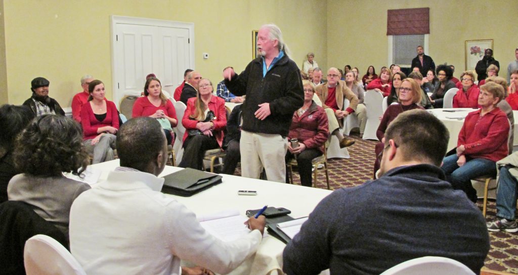 LongCreek Estates resident Patrick Whiddon rattled off the numbers of murders, shoplifting and robberies that occurred at the Sharpe Shoppe, Domino’s and Circle K, all in the Lee Road/Longtown Road commercial area; as well as crimes committed at commercialized corners on Hardscrabble with Spinx, CVS and Walgreens.