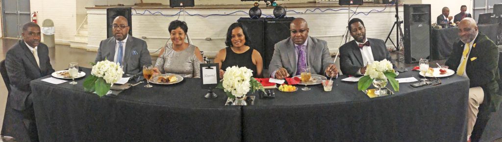 JROTC instructor Col.Thomas King, Winnsboro Town Council and Transportation Director Danny Miller, FCHS guidance secretary Vanessa Miller, Sylvia Harrison, Founder of the Sylvia’s Foundation and Board of Trustees District 1, guest speaker Pastor Reginald T Byrden, Superintendent Dr. J R Green and Henry Miller, Board of Trustees, District 3