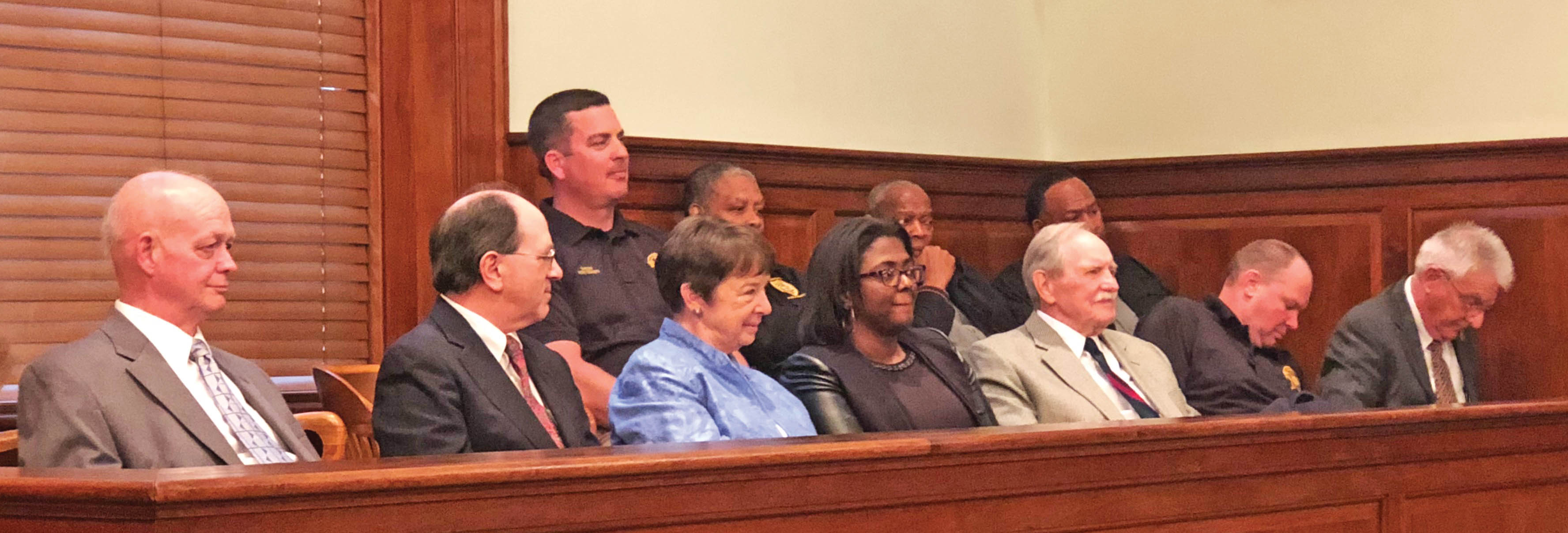 - County Councilman Jimmy Ray Douglas, Town Councilman John McMeekin, Sheriff Will Montgomery, Rep. MaryGail Douglas, Winnsboro City Clerk Jessica Ginyard and former House Representative attorney Crosby Lewis