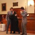 The investiture concluded with Matthew’s sons, Jody and Raymond, Jr., assisting their mother in donning her robe. Matthews then raised her sons’ hands high and smiled broadly.